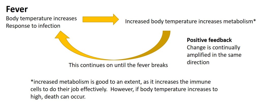 These mechanisms are not as common, but do exist. Rather than working to reverse a change in order to maintain homeostasis, these mechanisms amplify a change and keep the change going in the same direction. I will include a couple of examples below for you to understand it better.