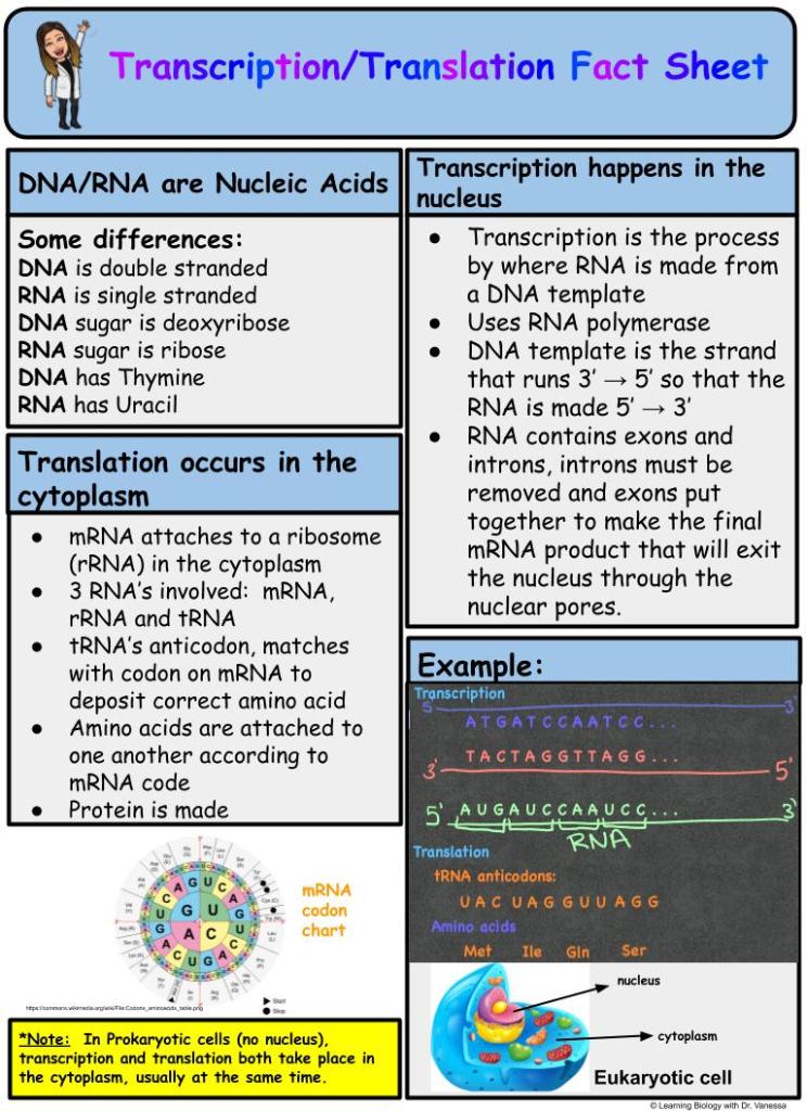 *NOTE: In prokaryotic cells (cells which have no nucleus), transcription and translation both occur in the cytoplasm, usually at the same time.